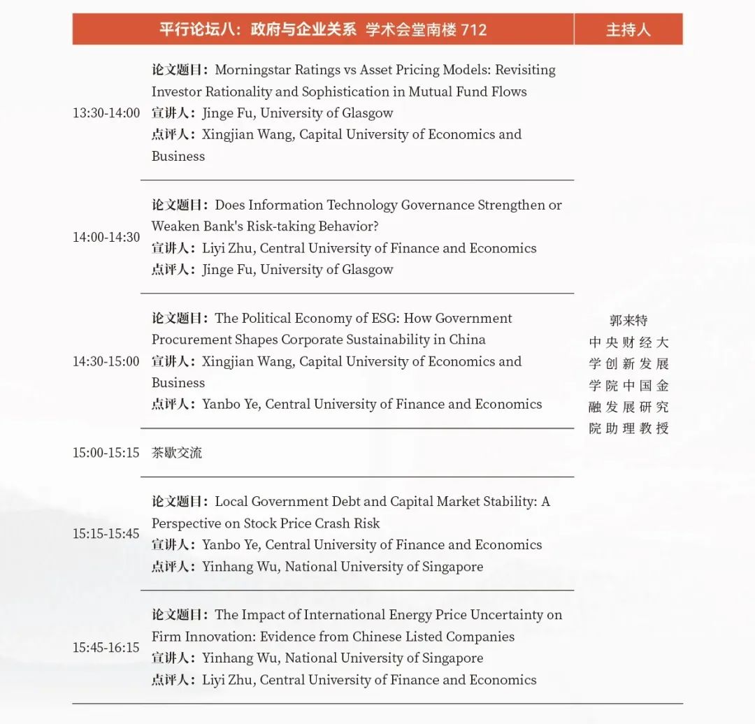 为深入学习贯彻党的二十届三中全会精神,以金融高质量发展服务中国式现代化,248cc永利集团定于2025年7月12日举办“2025金融市场与政策会议”。本次会议将邀请国内外知名专家学者,围绕“政府政策、金融市场与企业高质量发展”等前沿议题展开深入研讨。会议旨在搭建高水平的学术交流平台,促进金融理论与实践的深度融合,为推动我国金融业高质量发展贡献智慧与力量。现将会议内容和议程介绍如下:
