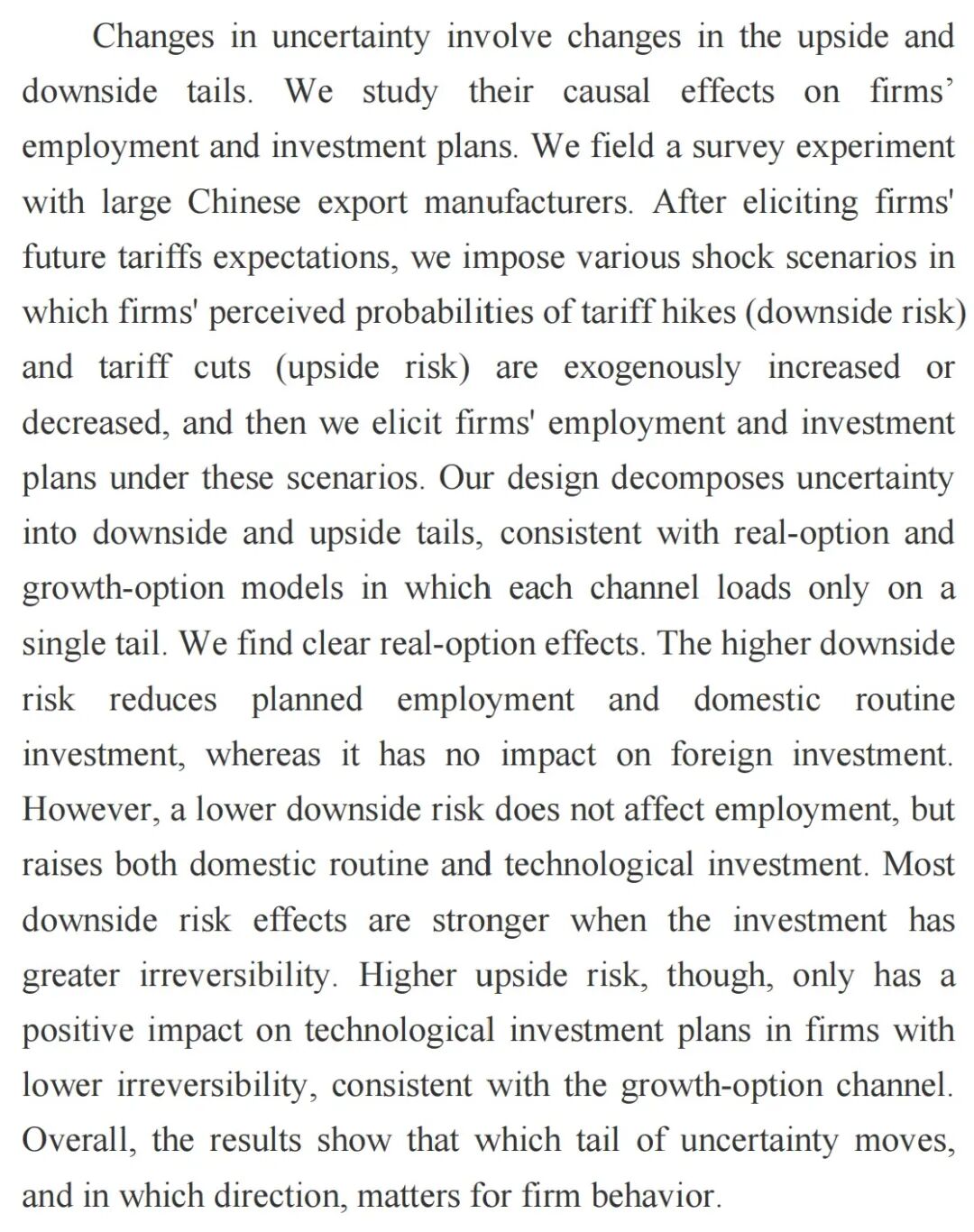 Upside and Downside Tails of Uncertainty, Irreversibility, and Firms’ Employment and Investment Plans: Evidence from Large Chinese Manufacturing Firms