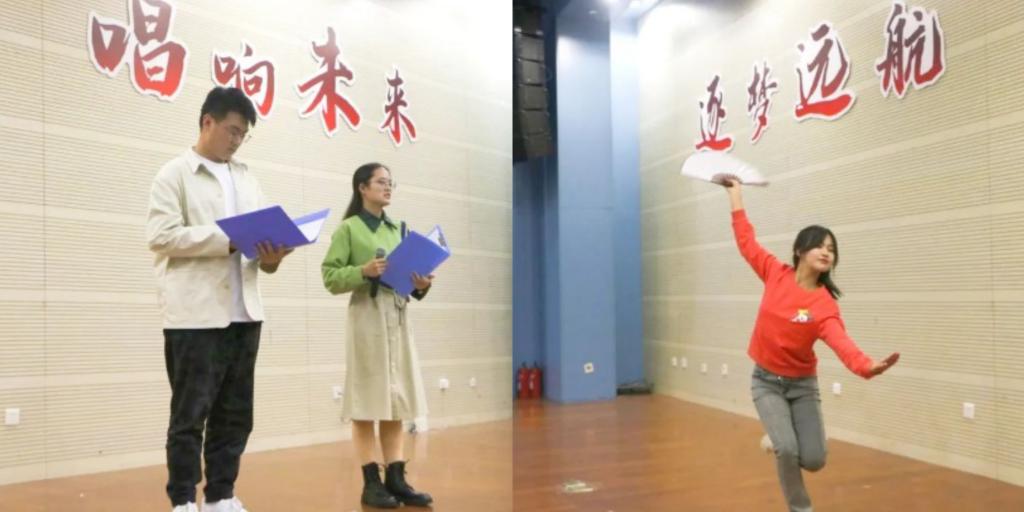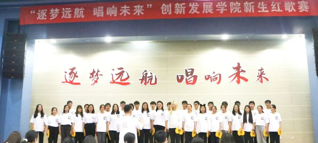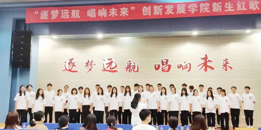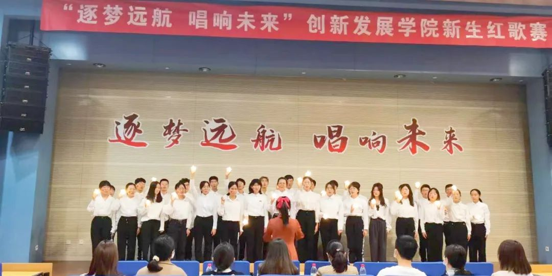 在集体合唱环节,5个本科新生班级分别演唱了《中国军魂》《我和我的祖国》《歌唱祖国》《光荣啊中国共青团》等耳熟能详的经典红歌。一段段慷慨激昂的旋律、一句句振奋人心的歌词,颂扬中国共产党带领全国人民前仆后继、顽强奋斗的百年征程,唱出了青年学子对党和国家的热爱!