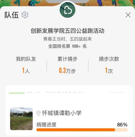 本次活动所积累的步数将在支付宝“三分钟公益”平台上进行捐赠,助力乡村学校拥有自己的田径场,为乡村振兴贡献自己的青春力量!