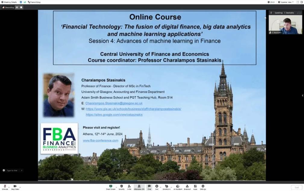 7月2日晚,格拉斯哥大学 Charalampos Stasinakis教授受邀开展“Applications of AI and LLM in Financial Research Techniques and Recent Advances” 在线讲座,分享了AI、ML 及 LLM 在金融领域的研究成果与趋势。Stasinakis 教授回顾金融 AI 发展脉络,他指出,在金融科技浪潮中,金融机构作为核心大数据源,借助 AI 与机器学习技术实现数据向洞察的转化,不仅能处理结构化数据,更可通过 NLP 技术解析新闻报道、社交媒体等非结构化文本。同时重点分析了常见神经网络在金融研究中的应用:多层感知器(MLP)适用于简单分类,循环神经网络(RNN)擅长时间序列处理,卷积神经网络(CNN)在图像与文本分类中表现突出,并强调随着算力提升,深度学习模型正逐步主导金融研究领域。此次讲座拓宽了师生学术视野,激发了对金融科技发展的深层思考。