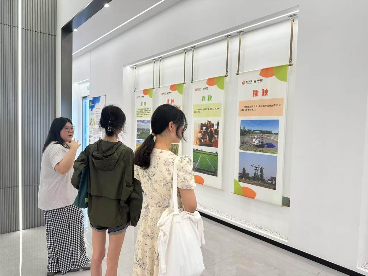 7月22日,团队赴浙粮集团善农现代农业产业园考察。该园区通过农业生产数字化、经营管理标准化、生态保护常态化等举措,有效化解传统种粮主体间纠纷,实现“稳粮增收”双重目标。
