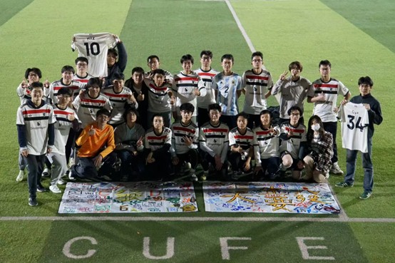 我们是一支团结友爱的队伍。不论年级高低,不管球技如何,大家都是亲切的“战友”。在上赛季,28名队员均获得了出场机会,共同为中金发征战绿茵场。在这里你能学到大佬精湛的足球技巧,也能收获学长独门的大学生活“秘籍”。