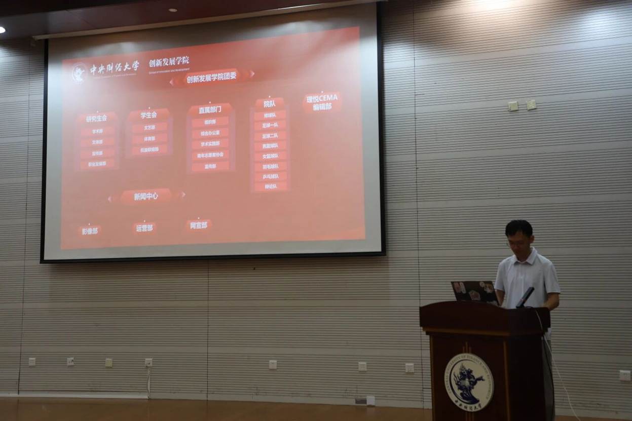 248cc永利集团团委学生副书记蒙思凯详细介绍学院团学组织整体框架。他围绕学院团委直属部门、学生会、研究生会、学院新闻中心、理悦 CEMA 编辑部及院队的具体职能展开讲解,帮助新生系统掌握各学生组织基本情况。