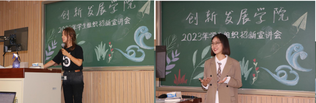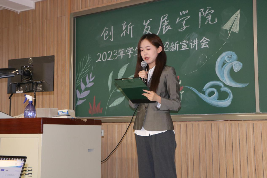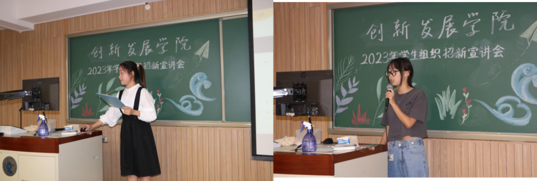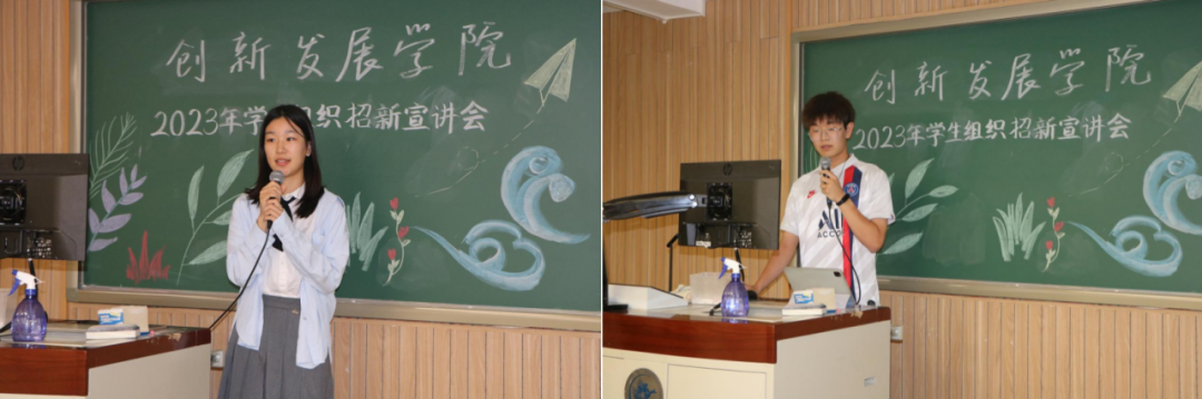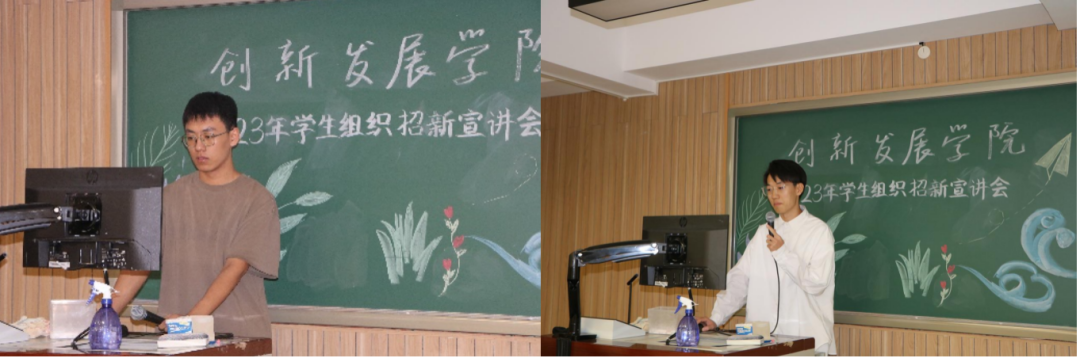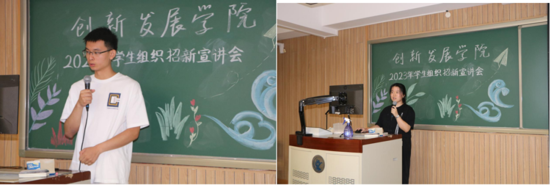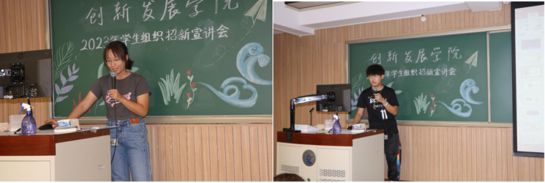 接下来是同学们期待的宣讲环节,团委、学生会、新闻中心各部门及各院队依次进行招新宣讲,部门负责人和院队队长们热情饱满,详细准确地介绍了部门和院队特色、基本职责、活动氛围等,在座的同学们都跃跃欲试,希望能在自己向往的部门中留下青春的痕迹。