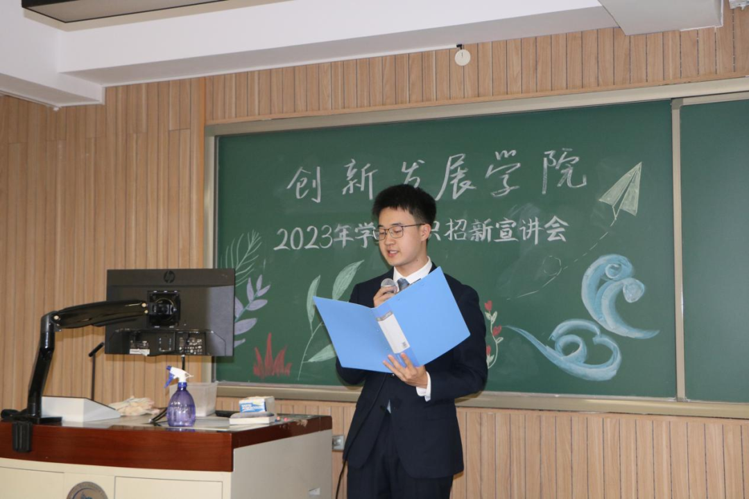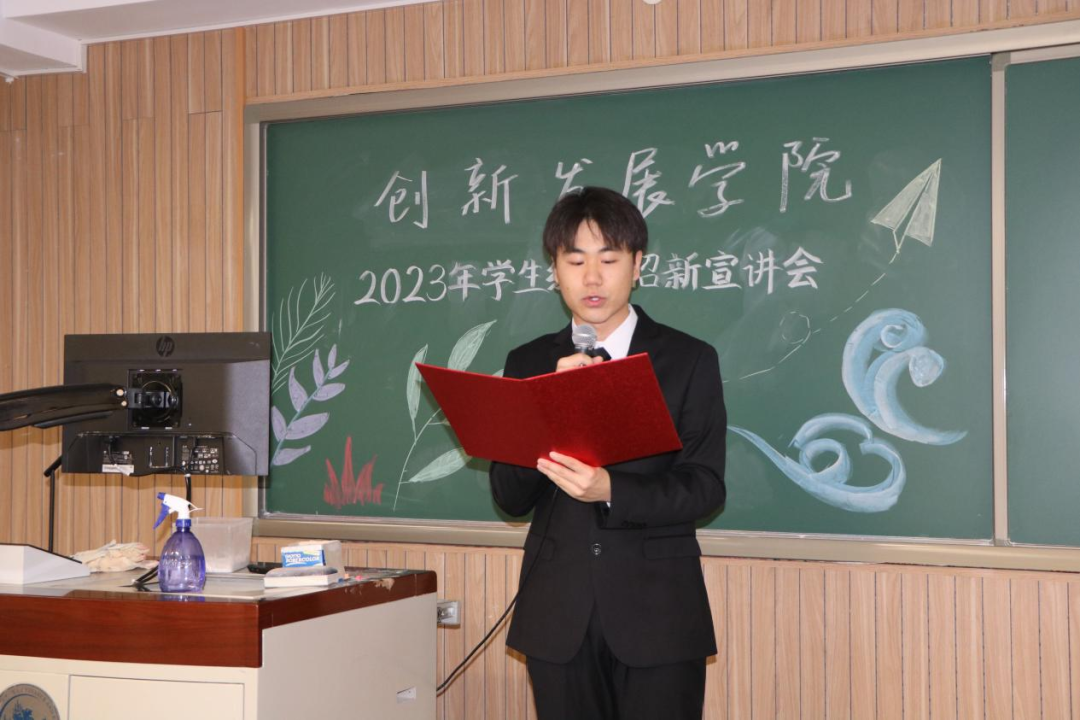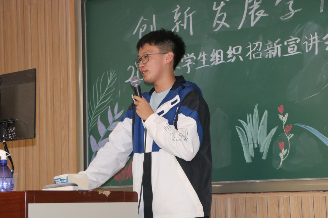随后,院学生会主席柴新凯介绍了学生会的大致情况,并通过自身经历对同学们的大学生活进行鼓舞与激励。