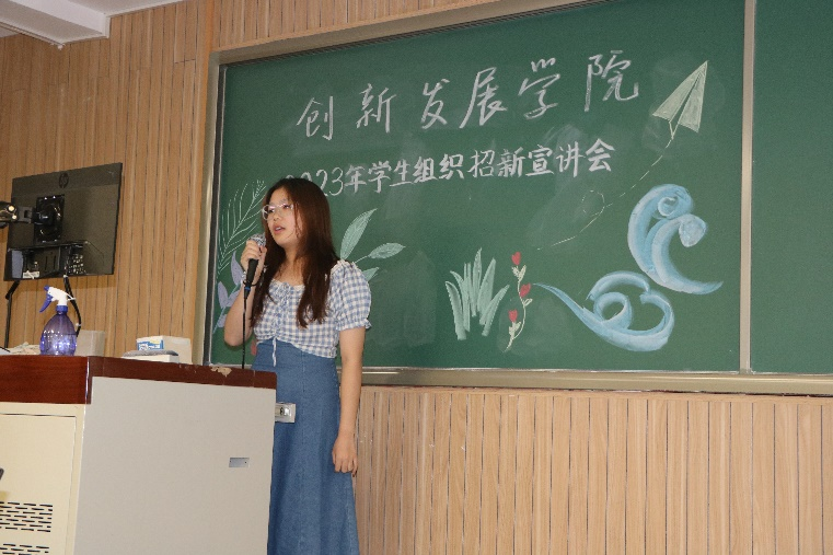首先,院团委学生副书记曾子庆代表团委各部门欢迎新生的到来,大致介绍了团委下属四个部门,让同学们对团委工作有了初步的了解。