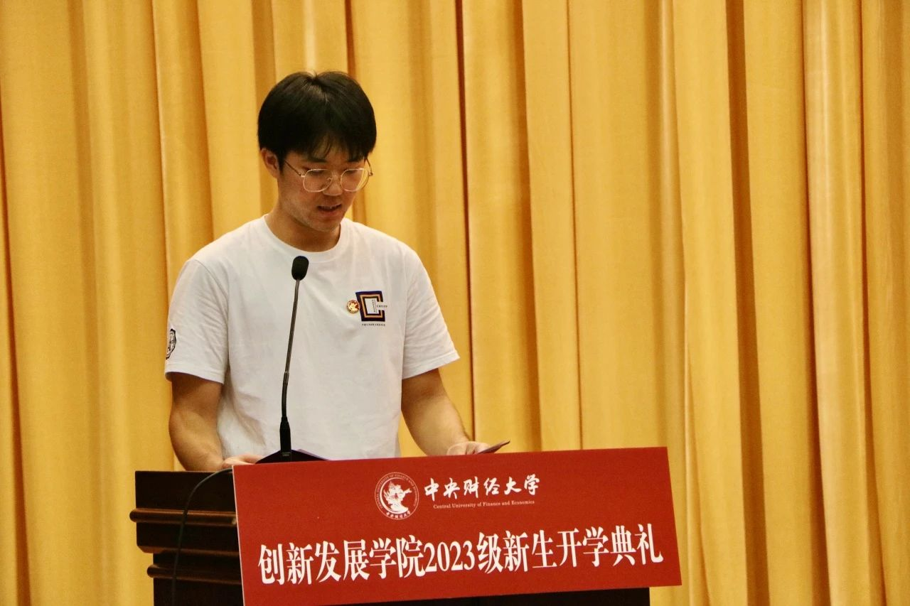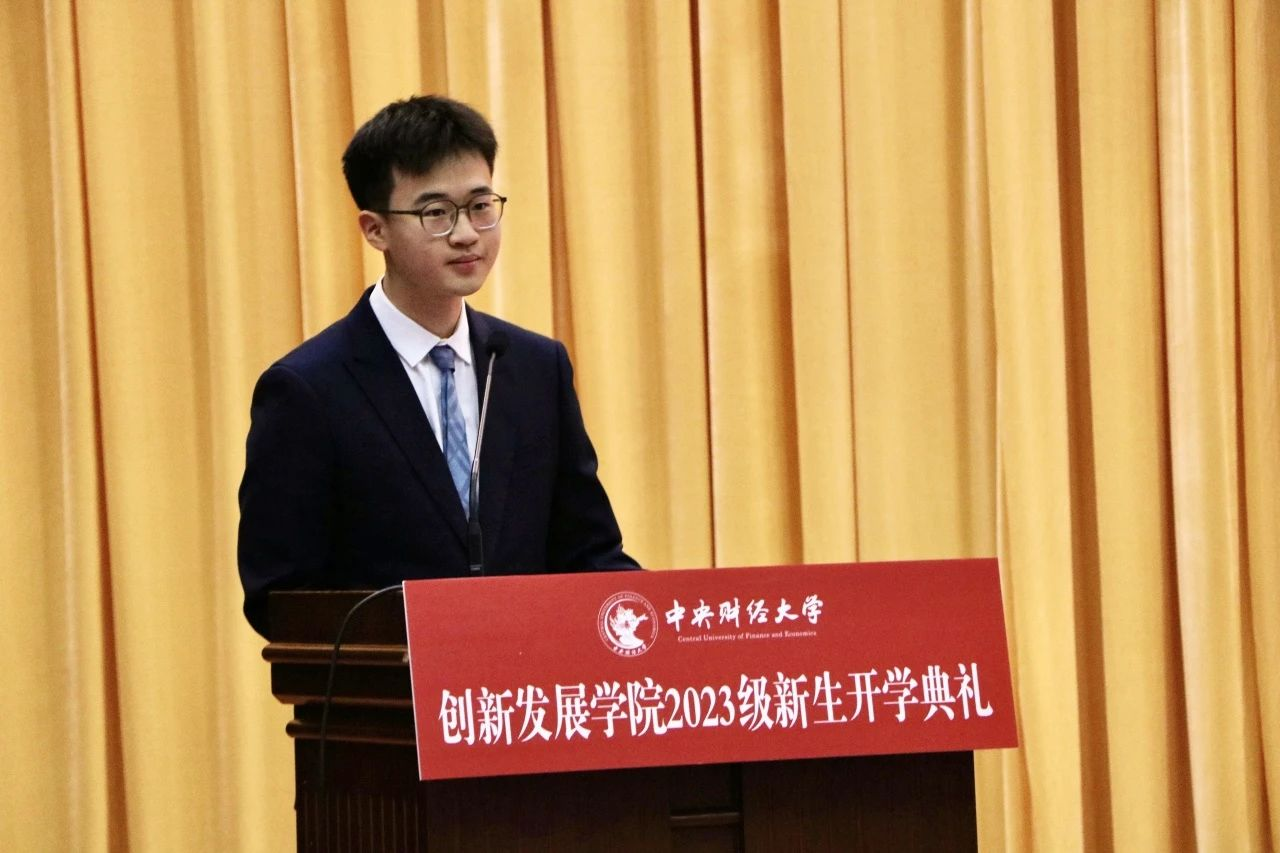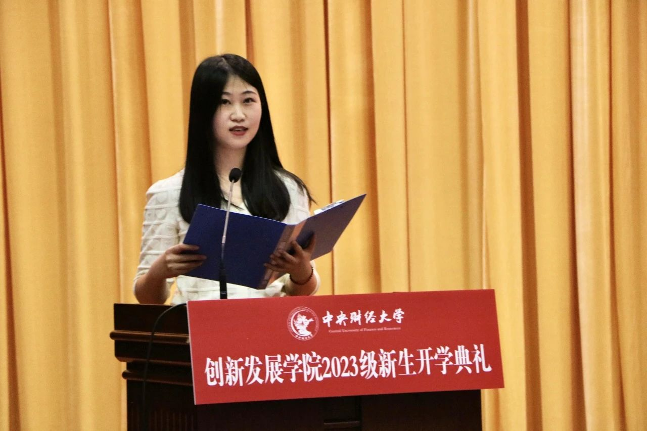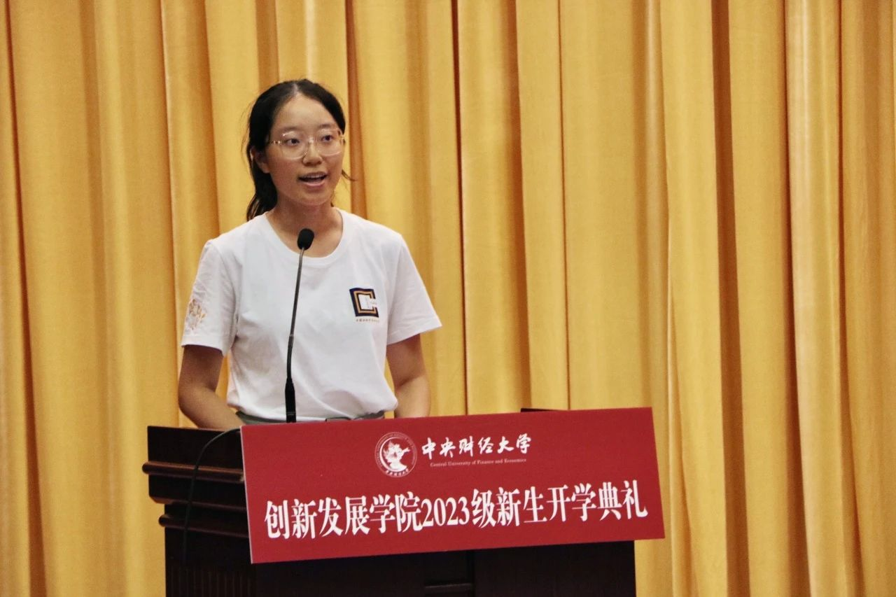 新生代表李美澍分享了自己入学几周以来的生活体验,短短几天,她已经深深感受到了同学、老师的关怀和鼓励,并期待同窗们能博学笃行,心系天下,在“经世济民、龙马乾坤”的道路上创造属于我们的辉煌!