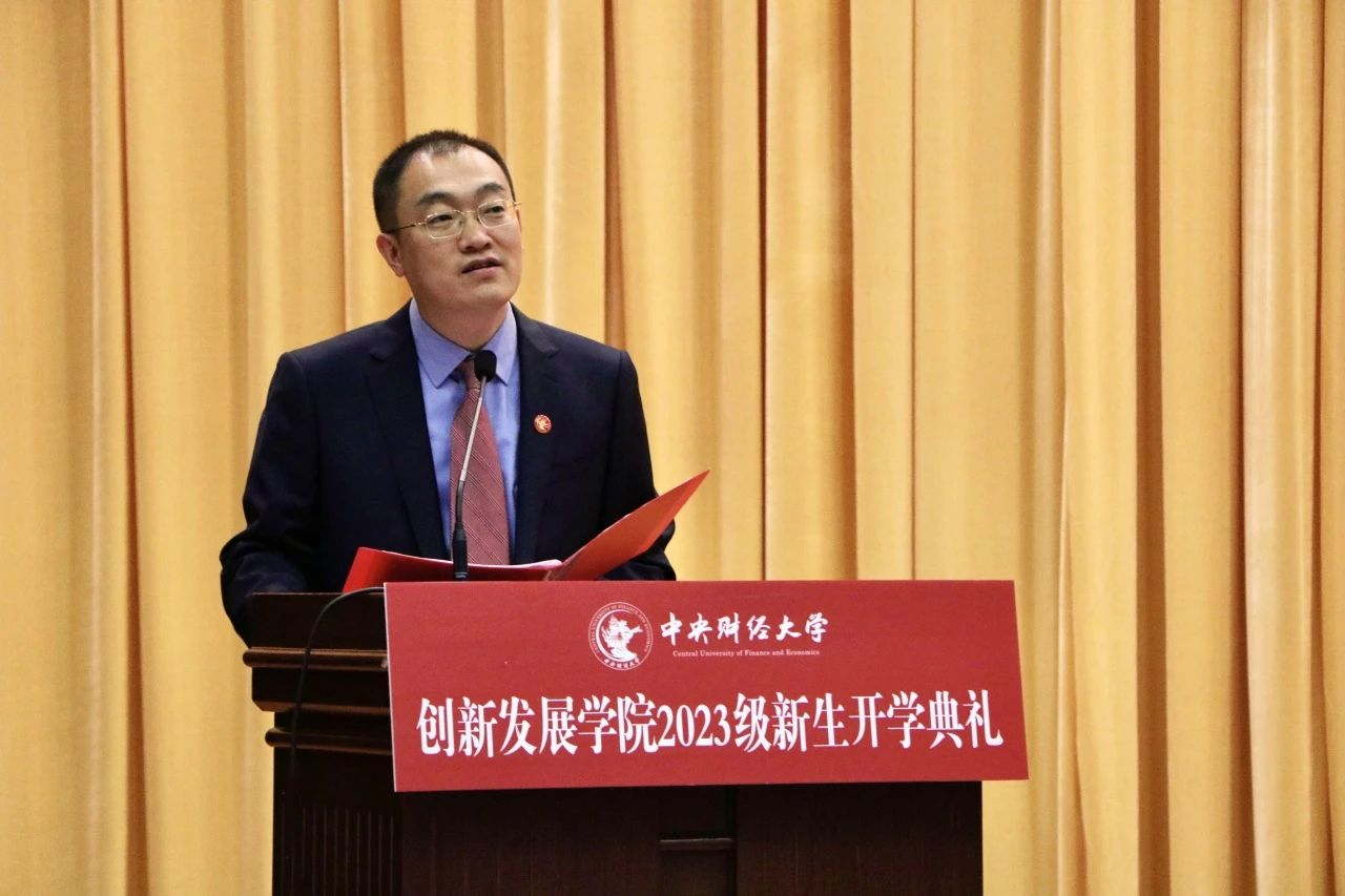 首先,李涛教授为典礼致辞,代表全院师生对282名新生的到来表示祝贺和欢迎,欢迎同学们在最美的青春年华遇见248cc永利集团,共同见证学院的发展,一起打造学院人才培养与学科建设的“金名片”,希望同学们通过高强度的数理训练学会在缜密求证中去发现和接近事实真相;通过高标准的国际化培养学会用世界眼光探索我国经济学发展的时代命题;通过朝气蓬勃的文化涵养学会在教育实践中以“建设者”的身份参与到学院发展。同时,也表达了几点期许:一是以敬畏之心求索真学问,尊重知识,敬奉真理,回答好中国经济学的“时代之问”;二是以进取之心锤炼真本领,让追求卓越成为一种习惯,志存高远,脚踏实地;三是以诚挚之心解决真问题,不断扩展自己的认知,敏锐而深刻地看待经济社会发展的现实,并积极寻求解决方法,做敢于直面问题、解决问题的行动者和参与者;四是以从容之心应对不确定性,坚持美好梦想,在财经报国的道路上坚定从容地走下去,以奋斗姿态拼闯出美好的未来;五是以包容之心拥抱新生活,包容差异,悦纳自己,用阳光积极的心态拥抱大学生活。