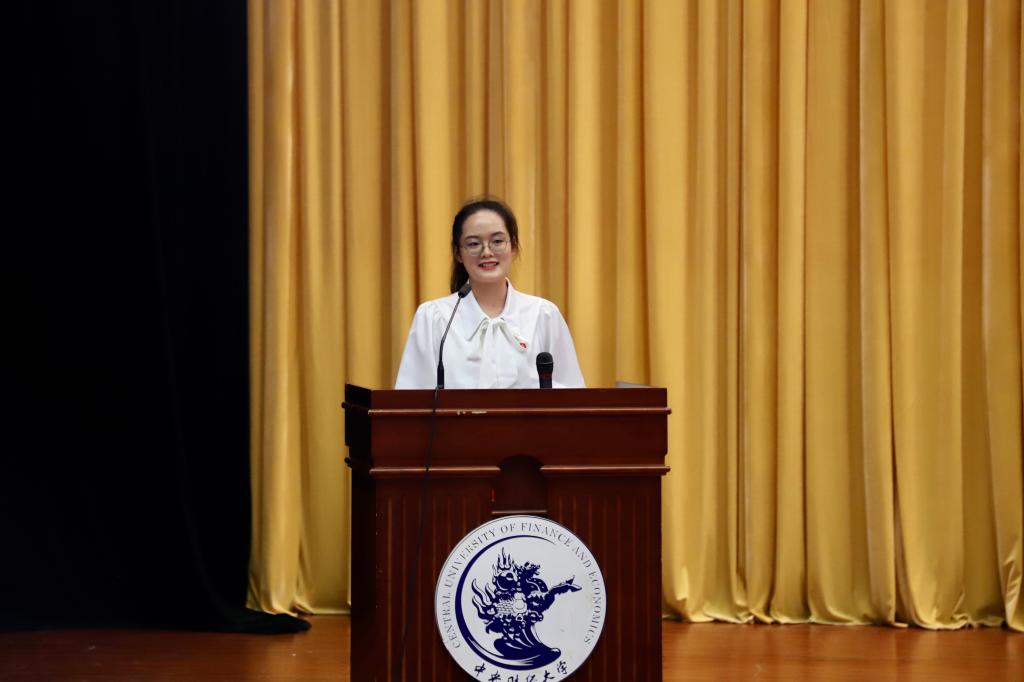 中国公共财政与政策研究院2022级本科生李祎博代表在校生发言。李祎博同学以“青年”二字作为切入点,探讨“何为青年?青年何为?”的命题。辛勤挥洒汗水、为时代奋斗是青春最动人的模样。而我们作为新时代的青年,更应当扎根祖国沃土,肩负起“财经报国,财青强国”的使命担当。