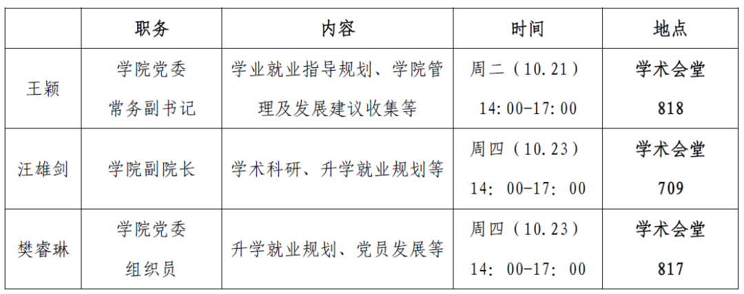 “书记院长开放日”旨在搭建师生交流的平台,畅通问题反馈渠道,进一步加强学院领导与师生之间的交流,倾听学生心声,了解学生所想,回应学生诉求,服务学生成长,集思广益、凝聚共识,切实解决学生在学习生活中遇到的问题,持续营造开放、包容、和谐的学院氛围。