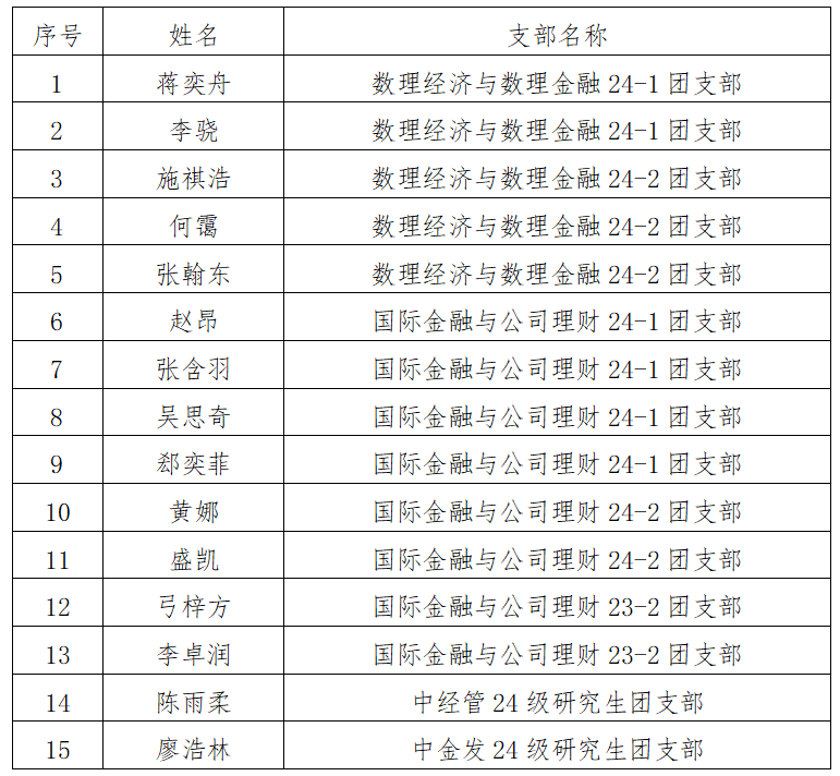 依据《永利集团官网发展团员工作实施办法(试行)》(校团字〔2023〕37号)和《248cc永利集团发展团员工作办法(试行)》,经各团支部委员会讨论并提交培养材料,学院团委预审,拟确定蒋奕舟等15名同学为2025年下半年团员发展对象,现将预审结果公示如下: