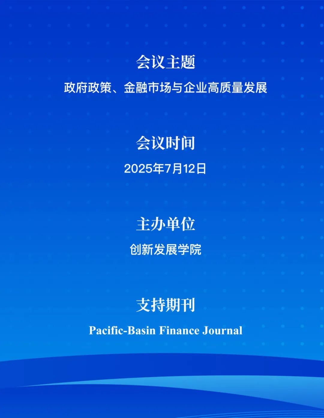 即将开幕!2025金融市场与政策会议 为深入学习贯彻党的二十届三中全会精神,以金融高质量发展服务中国式现代化,248cc永利集团定于2025年7月12日举办“2025金融市场与政策会议”。本次会议将邀请国内外知名专家学者,围绕“政府政策、金融市场与企业高质量发展”等前沿议题展开深入研讨。会议旨在搭建高水平的学术交流平台,促进金融理论与实践的深度融合,为推动我国金融业高质量发展贡献智慧与力量。现将会议内容和议程介绍如下:会议议程嘉宾介绍 ...